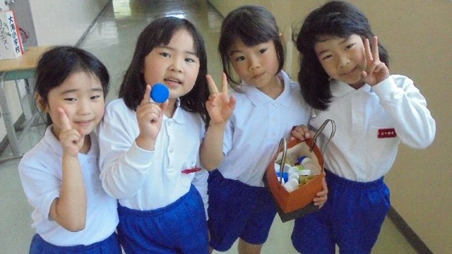 お願いしたら早速、校長室においてあったキャップを回収しに来てくれました、ありがとう。