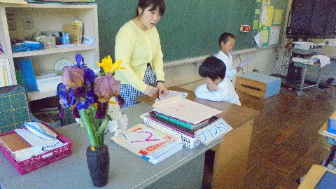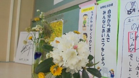 2年教室には、子ども達が校庭で摘んできた花が飾られていました。これもいいですね。