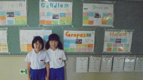 予想では、apple banana cat dog ・・・ 子どもたちよく考えました。では、決まった名前を発表します。Animal Balloon Candle Dream Egg Friend Grapes Hard でした。Hardの意味わかりますか?「一生懸命」だそうです。好きなものあり、名産あり、夢があり、かわいさがあり・・・すてきな班の名前になりました。こちらをクリックすると全部の班の写真がご覧いただけます。