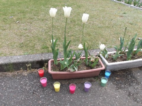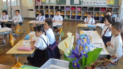 その中の笠川さんと髙﨑さんの手には、紙に包まれた切り花が。「持ってきたよ。」と自慢げに花を高々と上げて見せてくれました。本当にありがとうございます。各教室で呼びかけたら早速・・・うれしいかぎりです。学校中に広がるといいなぁ。