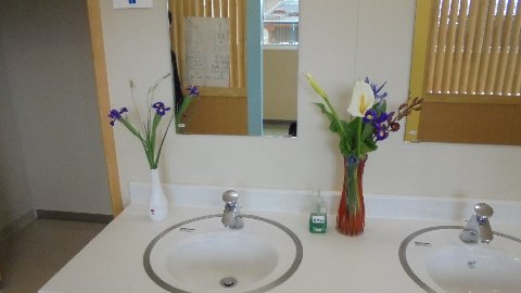 教頭先生がいろいろな場所に活けて下さいました。ありがとうございます。3年教室は?