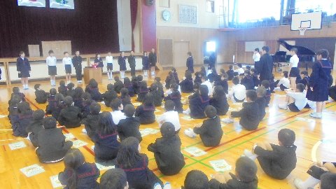 お客さんがおいでて集会などで大海っ子を前にお話しになり、帰り際良くほめて下さいます。子ども達が真剣に聞いてくれてとってもうれしかった、話しやすかったと。姿勢も良いです。反応も良いです。集会ではいつもこうあるのが当たり前という伝統でしょうか。いや、日々の授業の態度がこんな場所でも活かされているのだと思います。