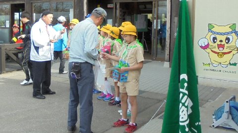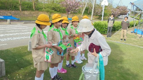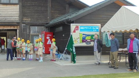 GW初日から5年生が早起きをして二ツ屋地内のグランドゴルフ場に出かけました。目的は、「緑の少年団募金活動」です。今日は全国から大きな大会が開かれ全国から18チーム、900人もの人が集まります。6時半過ぎから会場入り口二手に分かれ募金活動を行いました。