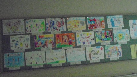 掲示も見どころの一つです。1年生と2年生の掲示板を写真でご紹介します。本物をしかと当日ご覧下さい。