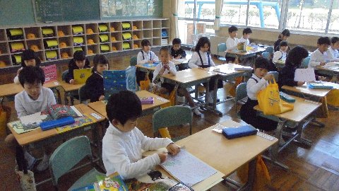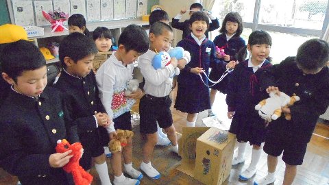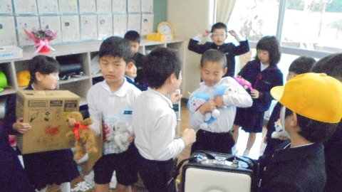 2年教室がにぎやかで活気を帯びています。家からダンボールやひも、それになにやらぬいぐるみまで・・・聞いてみると今週1年生を楽しませる時間を企画しているようです。ぬいぐるみ、何に使うのでしょうね、またお知らせします。お家から持って行くときどんなことを話していましたか。