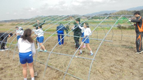 昨日は暖かな天気だったので、畑のヘチマ棚を設置しました。男性職員総出で・・・今年増えました、7名もいます。力仕事は任せておけですね。頼もしいです。子どもたちもちょこボラで手伝ってくれました。去年と違った場所に移動し、まだからみついていたくきやつるを取り除きました。今年もたくさん実が付いてほしいものです。ヘチマのトンネルができるといいですね。