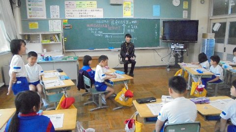 3年生は、初めての「総合的な学習の時間」をスタートさせたことをお知らせしました。これがそのときの1シーンです。まずは大海地域を学びます。きっかけとして新しく大海小においでた担任の竹野先生に大海地区の自慢を伝えている写真です。生まれ育った場所なのに知っているようで知らないことが分かりました。じゃあこれから調べていきましょう。こういうきっかけを大切にしていきます。
