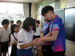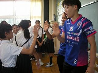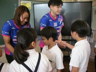 今朝、PFUブルーキャッツの選手の方が大海小学校に来てくださいました。各教室を回り、子どもたちにさわやかなあいさつをしてくださいました。運動会本番前に、プロのバレーボール選手の方からたくさん元気をもらえました。ブルーキャッツの皆さん、ありがとうございました。