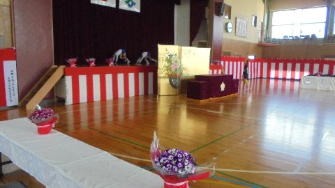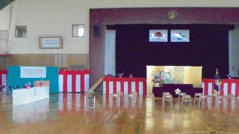 こんな立派な入学式会場ができあがりました。きっと今頃新入生はわくわくして眠れないのでは?こんな早く寝ませんね(笑)