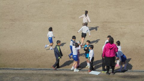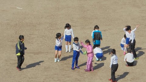 各クラスでお楽しみ会をしていました。2年生は運動場で鬼ごっこかな。