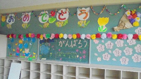学校では、子どもたちを迎える飾り付けや机椅子の移動も完了しています。特に新入生を迎える用意が華やかです。写真でご覧下さい。外のベランダにはチューリップが大きなつぼみをつけ始めました。