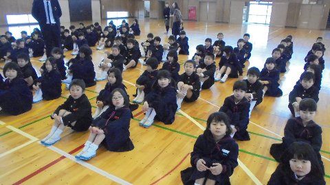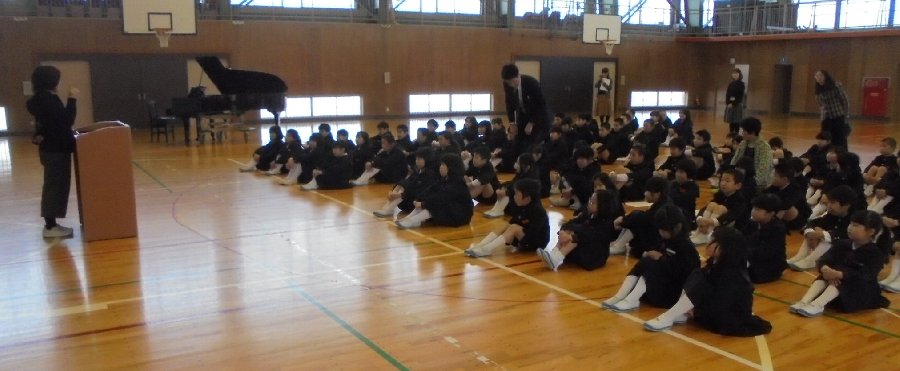 一つ目は、1年間集会でお話をしっかり聞いてくれてありがとう。この間の卒業式もそうでした。ここに立って話しているととても話しやすくて気持ちよかったです。