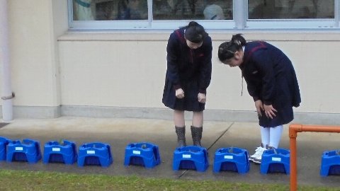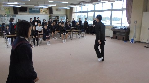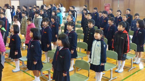 寒い中みんなで心を一つにして練習しました。初めて全校であわせました。態度が立派でした、声が出ていました、歌も上手でした。