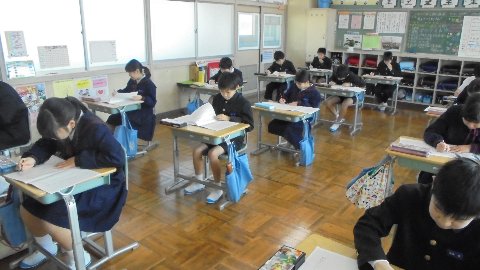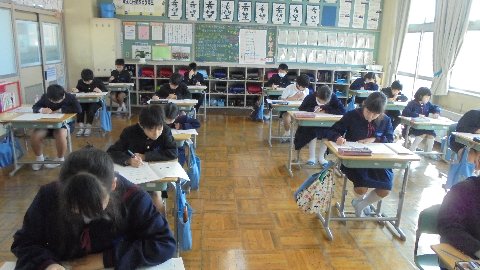 先日、石川県の評価テストを行いました。これは5年生の学力がきちんと付いているかテストするものです。進級するまでに弱点を克服します。放課後学習のため遅くなることがあります。ご理解ご協力下さい。