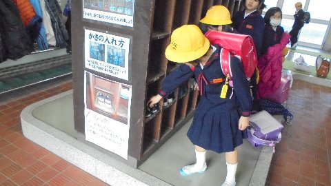 朝、児童玄関を回っているとこんなえらい子どもたちが。どうりでいつも下駄箱のはき物のかかとがきちんとそろっているはずです。クラスで決めているんですって。これぞまさしくちょこぼらですね。学校中に広がってくれるといいなぁ。もうみんなやっているみたい。