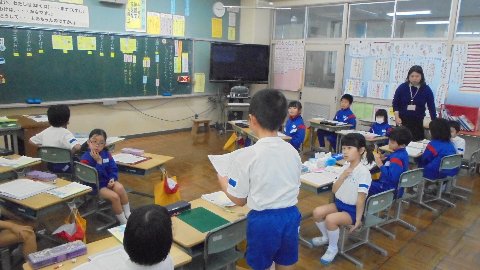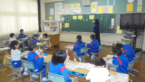 1限目国語の授業です。いろいろな鬼遊びを自分の言葉で説明し、どの鬼遊びがどうして好きか話したりまとめたりしていました。勉強って楽しいなと感じさせる学習でした。いつ行っても子どもたちの視線の先には話し手がいるのです。すばらしいです。