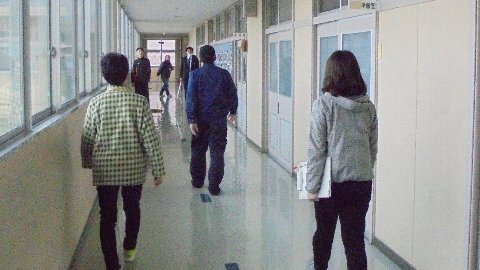 津幡署の米倉さんが不審者の役をして下さいました。迫真の演技で緊迫感がありました。自分の判断、近くの教員の判断、全校への放送に従い全員無事安全な場所に隠れることができました。教室で内鍵をかけ身を寄せながら。