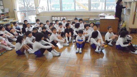 なかよし遊びの日だったのでお弁当を持って縦割り班で集まりました。今日から5年生がリーダーとしてデビューです。下級生のために食後のお楽しみゲームを考えてきてくれました。一生懸命下級生を仕切っていました。そばで6年生が温かく見守っていてほのぼのとしました。みんな協力して楽しいひとときを過ごせました。