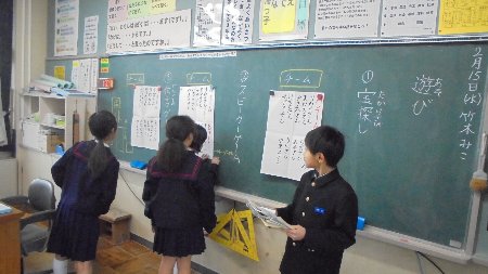 5年生の教室前を通るとよく耳にする音楽が流れてきます。どうやら送る会の出し物練習のようです。のりのりでリズムに乗って踊っています。発表が楽しみです。