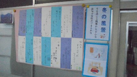 俳句は「冬の景色」です。写真ではみえませんね。見に来ていただけると良いですね。お時間があればいつでも学校へ。玄関で「ピンポーン」あとは名乗っていただけばOK。