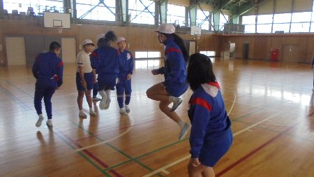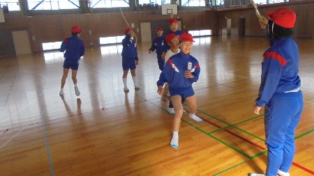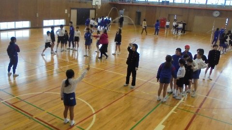 6年生は運動が得意です。8の字長なわ上手に飛べるのでちょっと試練を与えました。ます、グループを作って8人1グループ。回す人が二人必要、跳ぶ人は6人・・・なかなかハードですよ。そしてただ一回跳ぶだけでなく、中で2回3回と跳ぶ回数を増やしていく。頭から湯気を出してがんばりました。新しい技も「-1」どんな跳び方かわかりますか。まるでハードル走みたいなんですよ。くわしくは6年生に聞いて下さいね。