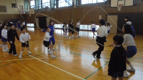今日の昼休みは、なかよしグループでなわとび競争をしました。3分間で何回跳べるか・・・どれくらい跳べるものなんでしょうね・・・結果は・・・