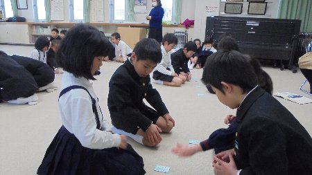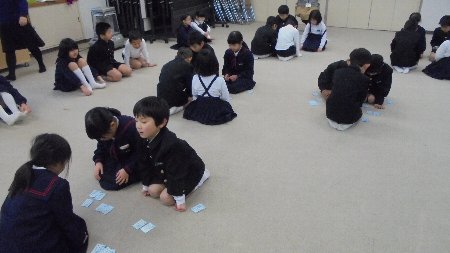 1.2年生が合同で百人一首大会をしました。
