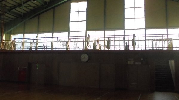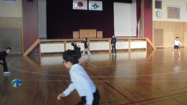 体育館では、下のフロアーでボール運動をしていても、なわとび運動のじやまになりません。なわとびはジャンピングボードも設置された専用の2階で気持ちよくできます。恵まれた学習環境で運動好きな子どもたちに育っています。