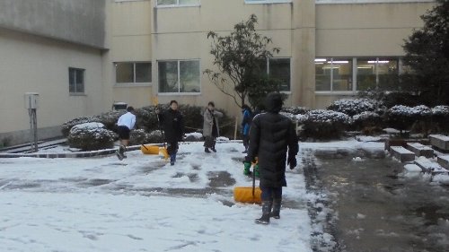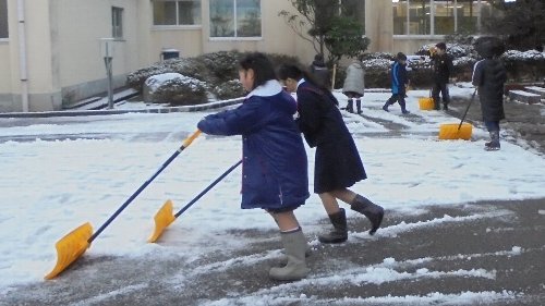 休み明け心配された大雪とはならず、ご覧の写真くらいの降雪となりました。今朝は学年走で出なく、委員会の子どもたちが雪をよけてくれました。寒い中ありがとう。
