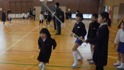 長休み全校児童が集まり、ながなわとびを楽しみました。びっくりしたのは、上手にとべなかった1年生がとっても上手になったことです。体育の時間練習したのでしょうか。