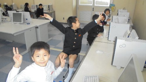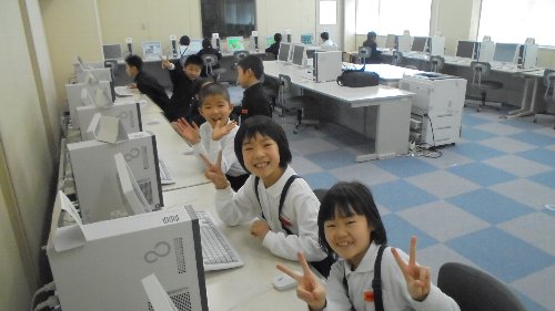 コンピュータ教室で1人1台のマシンを使って、お絵かきソフトを使って作品作りをしました。お題は「冬」「昔話」でした。ソフトのいろいろな機能を駆使して取り組んでいました。上手なもんですね。今の世の中コンピュータなしでは仕事ができません。子どもものうちから慣れ親しんでおくことが大切ですね。