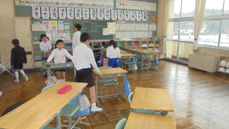 大海っ子はそうじがとっても上手です。前にもお知らせしましたが、そうじの時間話し声が聞こえず、学校に誰もいなくなった感じすらします。1年生から6年生が協力してそうじをしています。広い場所を分担して・・・中には1人で特別教室一部屋を掃除している子もいます。自分たちが勉強する学校、おかげで気持ちよく過ごすことができます。コンピュータ室を一人で担当035.JPG  長い廊下は僕の担当036.JPG