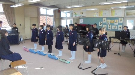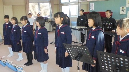 いつも職員室にいると3階から歌声や合奏曲が聞こえてきます。今日は職員室のメンバーが4年生からミニコンサートの招待を受けました。どうぞ2時間目に聞きに来て下さいと。曲目は「茶色の小瓶」木琴やリコーダーを上手に演奏していました。息がぴったり合って美しいハーモニーを奏でていました。