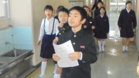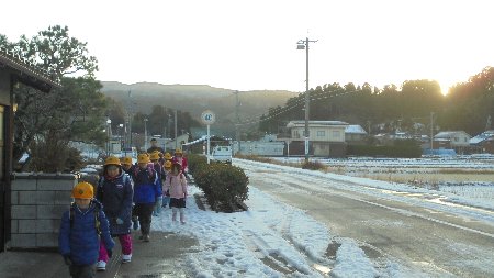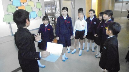 新年、新学期を迎え、全校であいさつ運動を展開しています。なかよし班の異学年グループで朝登校したら集まり、めあてを確認したら学校を一回り、大きな声であいさつをして回ります。昼の放送でその日特に元気良かった人の名前を紹介しています。