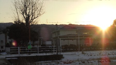 2017年1月18日 20時03分 今朝は朝日が気持ちよく顔を出した頃の登校になりました。昨夜から快晴でその分冷え込みが強く、路面はカチカチ滑りました。だんだん日の出が早くなっていることを実感できる日になりました。そうそう青空に半月がまだ高いところにあってこれもきれいでした。