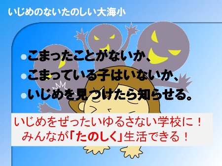 学校では計画的に「いじめ防止」の授業を行っています。学校だけでなく家でもどんなところでも相手の気持ちを考えた思いやりの気持ちで過ごせるといいですね。冬休み中のご指導よろしくお願いします。