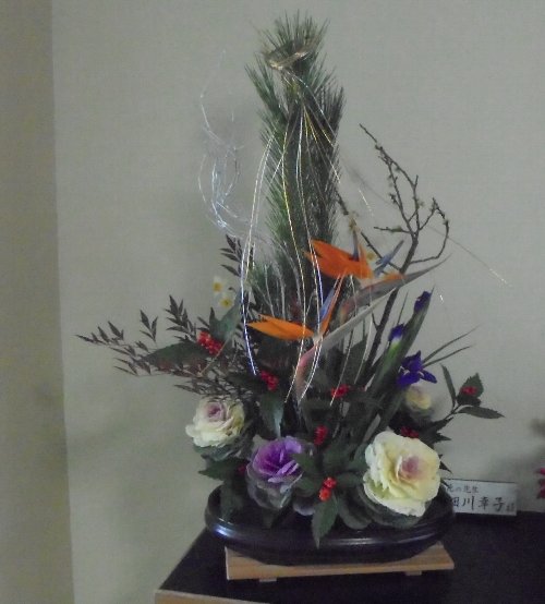 昨日はクリスマス、ご家庭ではケーキを囲んで楽しいひとときを過ごせたでしょうか。学校の玄関の花、クリスマスバージョンでしたが、さっそく細川さんが生け替えに来て下さいました。テーマはお正月、松竹梅やら水引やら豪華な飾り付けにしていただきました。お聞きすると長持ちして子どもたちが登校するときまで大丈夫だそうです。