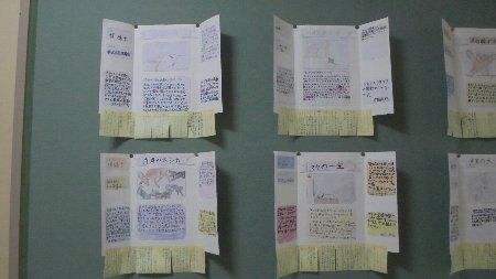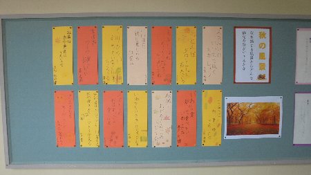 4年生は、短歌を作り掲示しました。5年生は6年生と同じくショーウィンドウで国語の学習をまとめました。先日まで立てかけてありましたが、こうやって貼ってみると本当の窓みたいですね。授業参観でごゆっくりご覧下さい。