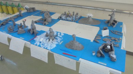 見て下さい。4年生の作品です。奥まったところあるのでみつけにくいので紹介しますね。