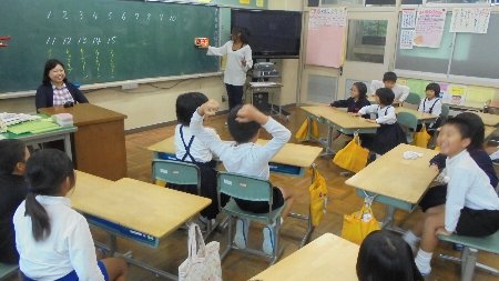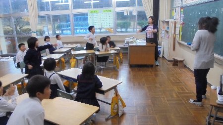 シャンさんと英語の勉強をするのはとっても楽しいです。数の数え方、もちろん英語で学習しています。一人ずつ順番に数字を英語で言ってたっていきます。担任の坂口先生も参加しています。