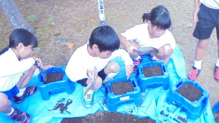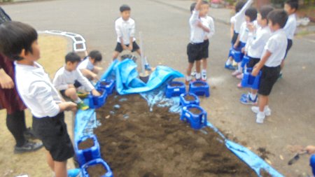 先週のことですが、1年生が小春日和の中チューリップの球根を植えました。来年入学する1年生のために心を込めて土をかぶせていました。この前から取り組んだプランターに植えたちょこボラの経験が役立ちました。こういった生活経験を大切にしていきます。