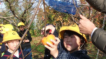 瀬戸町の柿団地で紋平柿の収穫体験をさせていただきました。
