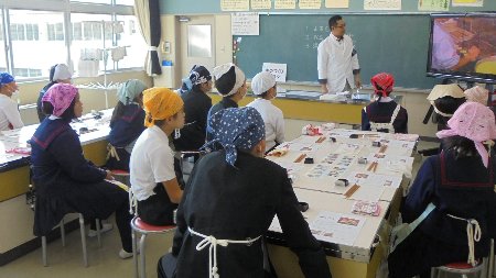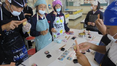 今日は、学校に和菓子作りのマイスター(技能士)である八野田さんをお招きして和菓子作りを体験させていただきました。