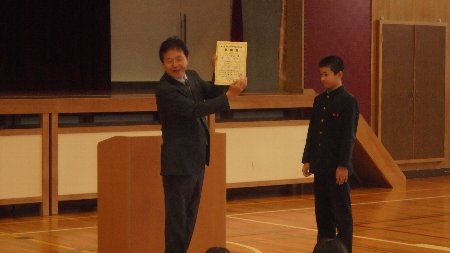 集会ではたくさんの賞状が届いていたので表彰式をしました。今日お家に賞状を持って帰ったことと思います。ほんとうにたくさんの賞状でした。