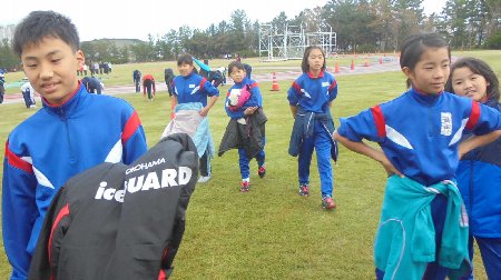 金沢市西部緑地公園で小学生の駅伝大会がありました。今日の本番全選手見事に走り抜きました。あいにくの天気で冷たい雨が降る場面もありましたが、元気にたすきをリレーすることができました。控えの選手も記録会に出場して来年につながる走りを見せてくれました。