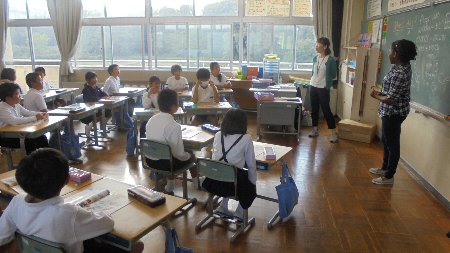 教室から大きな声が聞こえてきます。シャンさんの英語の授業、みんないい反応をしています。