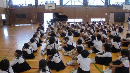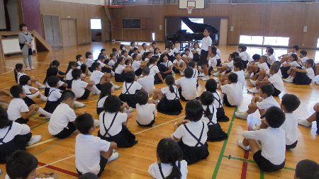 月初めの集会、今回はスケジュールの関係で1日早く9月に10月の集会を行いました。いつもの通りとってもすばらしい態度で集会に参加できました。近頃は聞く姿勢が良いだけでなく、話を聞いて反応、発言をすることも身についてきました。