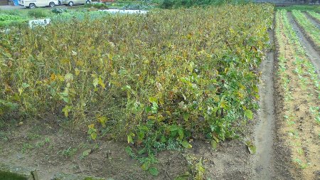 味噌づくりのため育てている大豆を「枝豆にして」いただいてからだいぶたちました。あんなに緑色だった大豆が茶色くなってきています。完熟してきているのでしょうか。大豆の横にはなにやら大根のような植物が植えられ葉が大きくなってきています。伺うと「かぶら大根」だそうです。これを使って冬にかぶら寿司を作るらしいです。これも子どもたちの地域教材になりそうな・・・