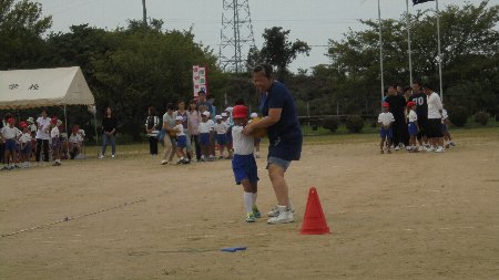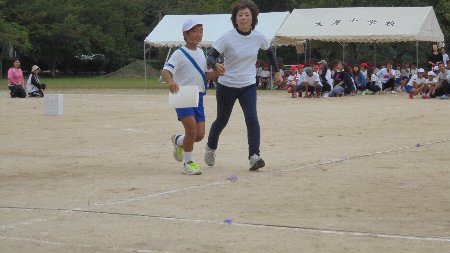 大海小学校のPTA種目は低中高別に3種目あります。今年は、「コアラ」「カンガルー」「人借り」でした。どの種目も大いに盛り上がりました。親子の絆が深まったひとときでした。