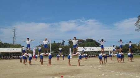 紅白の応援合戦、みんなで大きな声を出し、士気を高めます。相手への応援コールがあります。相手と一緒に高まろうという思いやりの気持ちが届きます。応援団長は、紅組古川さん、白組青山さんです。この二人を中心にリーダーがみんなを引っ張ります。